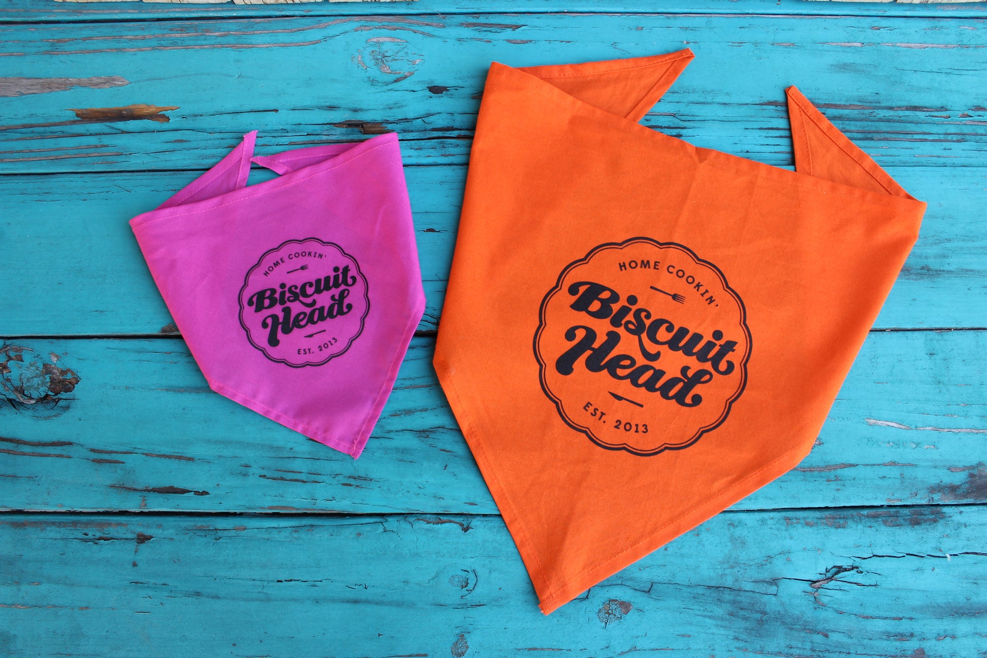 Are your pets jealous of your Biscuit Head merch? Well now they can rock their own cute Biscuit Head bandana in hot pink or orange. (Also wearable by humans). The small size hot pink is 20" L x 9.5" W x 0.005" Thick, 100% cotton.